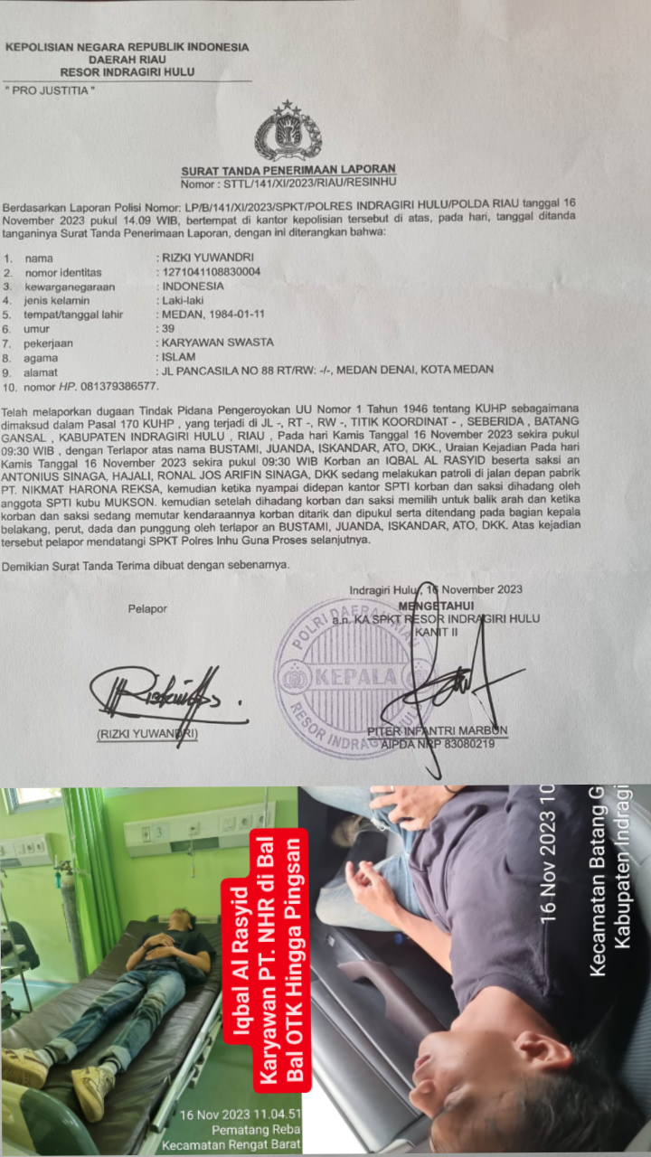 PT. NHR LAPORKAN DUGAAN PENGANIAYAAN KARYAWANNYA KE POLRES INHU