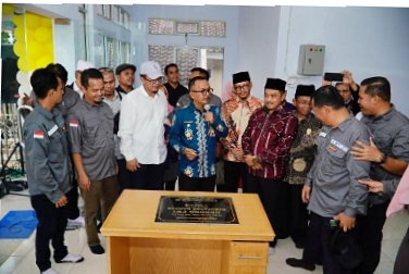Pada kesempatan itu, Firdaus menandatangani prasasti menandai peresmian Gedung baru PWI Kampar tersebut.