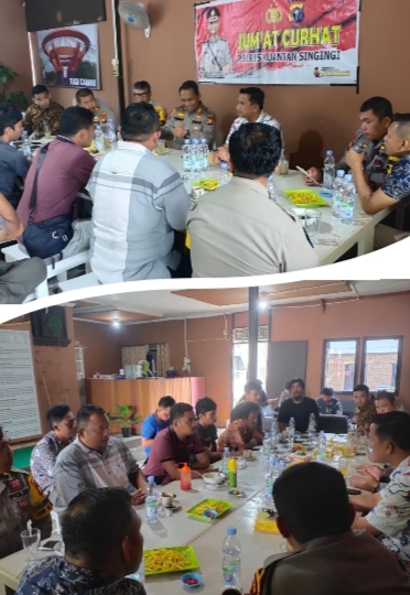 RIAUMADANI. COM, TELUK KUANTAN,- Polres Kuansing Kembali menggelar kegiatan Jumat Curhat Sebagai Upaya Cooling System Jelang Pemilu 2024, untuk mendengar langsung curhatan Persatuan Batak Kuansing (PBK) mengenai saran kritikan masukan serta aduan masyarakat terkait dengan pelayanan kepolisian, kegiatan bertempat di Kedai Kopi Aren Kel. Sungai Jering Kecamatan Kuantan Tengah Kabupaten Kuansing, Jumat (29/12/2023) Pukul 09.00 WIB.