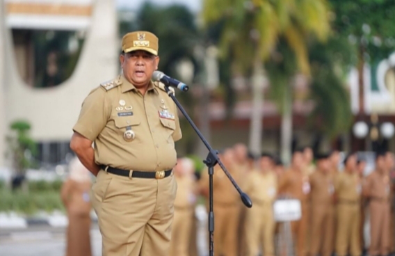 RIAUMADANI. COM, PEKANBARU - Gubernur Riau (Gubri) Edy Natar Nasution pimpin apel perdana awal tahun 2024. Ia menegaskan, agar seluruh pegawai organisasi perangkat daerah (OPD) di lingkungan Pemerintah Provinsi Riau dapat bekerja maksimal dan melakukan evaluasi kinerja.