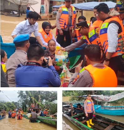 RIAUMADANI. COM, KUANTAN SINGINGI - Luapan Sungai Kuantan yang tinggi dikarenakan curah Hujan yang cukup tinggi beberapa hari ini mengakibatkan bencana banjir di beberapa lokasi wilayah kabupaten Kuantan Singingi, Provinsi Riau. Hal ini menjadi perhatian khusus bagi Kapolres Kuantan Singingi Beserta Jajaran Polres Kuansing