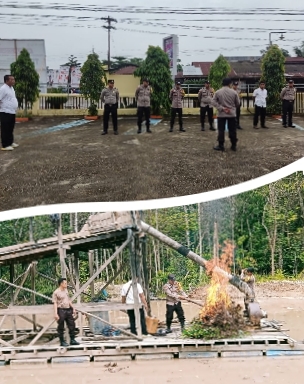 Polsek Kuantan Hilir Bakar Dua Unit Rakit PETI Di Desa Kasang Limau Sundai Kecamatan Kuantan Hilir Seberang