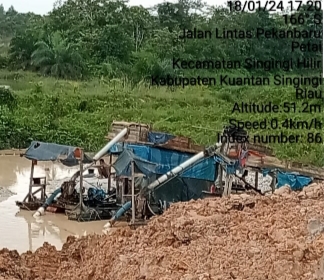 RIAUMADANI. COM, TELUK KUANTAN, Singingi Hilir - Telah hampir 2 (dua) bulan Pelaku Inisial AN" melakukan aktifitas Penambangan Emas Tanpa Izin, (PETI) namun sampai saat ini, Jum'at (19/1/2024), aman-aman saja, tidak tersentuh Aparat Penegak Hukum (APH) setempat, bahkan kegiatannya berlokasi tidak jauh dari kantor Polsek Singingi hilir, Desa Koto baru kecamatan singingi Hilir Kabupaten Kuantan Singingi.
