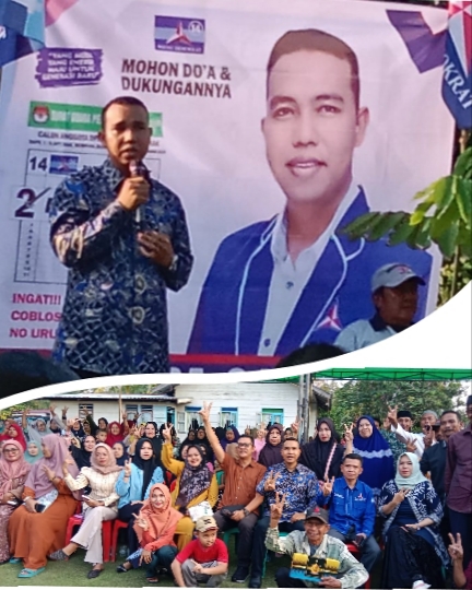 Kampanye Dialogis Alfitra Caleg DPRD Kabupaten Siak 2024-2029 dari Partai Demokrat, Masyarakat Kampung Lalang Kecamatan Sungai Apit Siap Dukung Alfitra. SH. MH