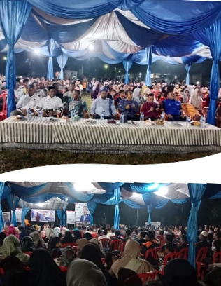 Sungai Apit - Ratusan masyarakat Kampung Mengkapan berbondong-bondong menghadiri kampanye Dialogis Partai Demokrat Jum'at (09/02/2024), malam