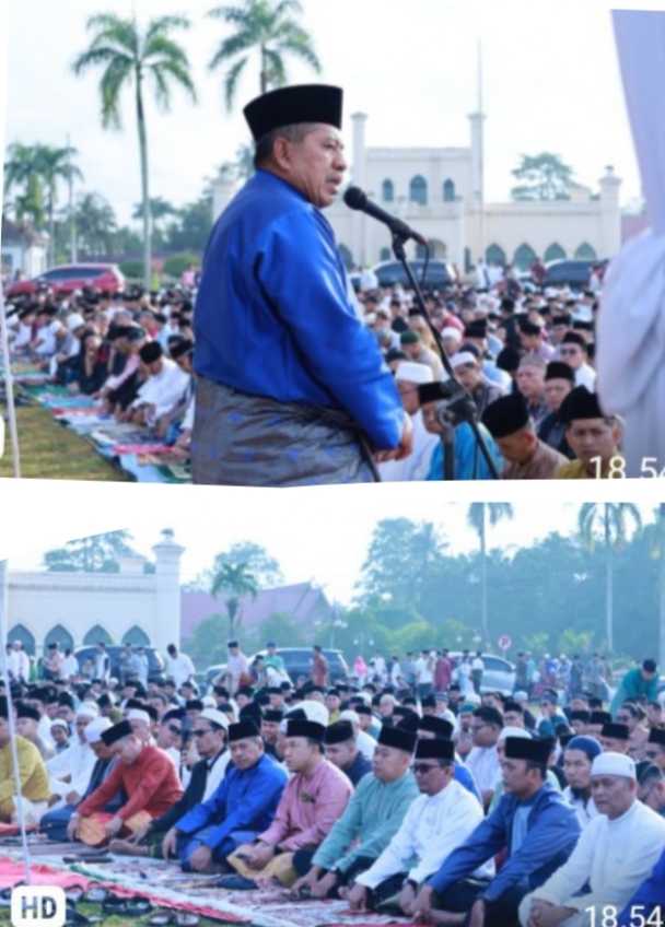Hal itu disampaikan Bupati Siak Alfedri, sebelum melaksanakan Salat Idul Fitri 1445H/2024M di lapangan kompleks Istana Siak, Rabu (10/04/2024) pagi.