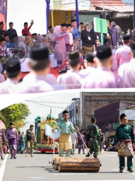 Menempati barisan urutan ke empat dari 12 Kabupaten/Kota, Kafilah Kabupaten Kepulauan Meranti mengikutsertakan lebih dari 600 orang dalam barisan pawai.