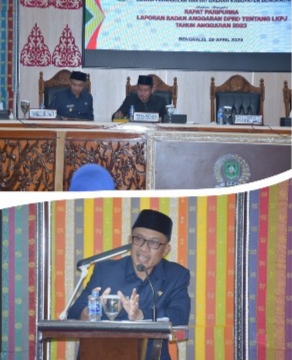 "Izinkan kami memberikan apresiasi yang tinggi atas kinerja DPRD Kabupaten Bengkalis, khususnya Banggar LKPJ DPRD Kabupaten Bengkalis, yang secara maraton dan komprehensif telah melakukan pembahasan dan penela’ahan atas laporan pertanggung jawaban Bupati Bengkalis akhir tahun anggaran 2023. alhamdulillah, dari pembahasan dan tela’ahan tersebut, banggar menyatakan dapat menerimanya,"ucapnya.