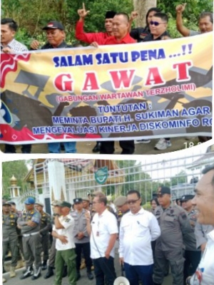 Diskominfo Diduga Tidak Transparan, Puluhan Massa Wartawan Berunjuk Rasa di Kantor Bupati Rohul