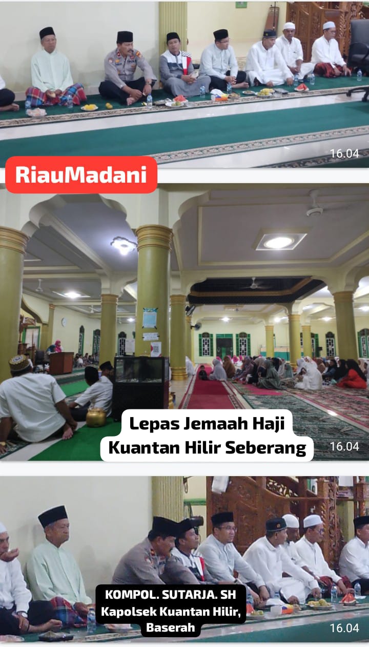Kuansing, RIAUMADANI. Com- Pelepasan Jemaah Calon Haji (JCH), Kec. Kuantan Hilir Seberang (KHS), Berlangsung di Masjid Besar Al- Iklas, Desa Koto Rajo, KHS selasa, (14 mei 2024), pukul 20.00 wib yang dipimpin oleh Kepala KUA Kec. KHS, Elfison Erhan, S.Ag.