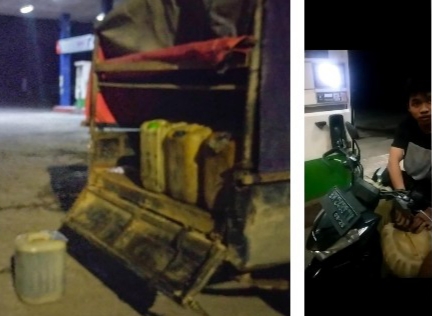 Lebih anehnya lagi, di kaca depan sebelah kiri mobil pick up Carry BM 8664 CH ditempelkan logo media. Dalam logo tersebut bertuliskan Pers Buser Bhayangkara. Sementara mobil tersebut bermuatan puluhan jerigen yang berisi BBM (Bahan Bakar Minyak) jenis pertalite yang telah siap diisi dari pompa SPBU tersebut. (Sona)
