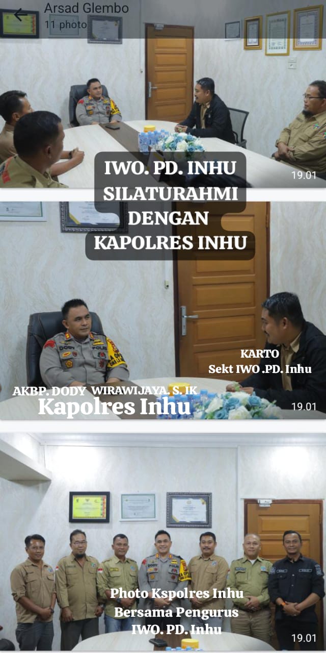 Kapolres Inhu AKBP. Dody Wirawijaya, S.I.K yang didampingi oleh Paur Humas Polres Inhu Aipda. Misran mengucapkan terima kasih atas kunjungan dari IWO Inhu. Pada kesempatan tersebut, AKBP. Dody Wirawijaya, S.I.K mengatakan, bahwa silaturahmi yang dijalin ini sebagai bentuk kemitraan antara IWO dan Polres.