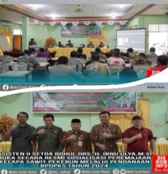 RIAUMADANI. COM, ROKAN HULU – Dinas Peternakan dan Perkebunan (Disnakbun) Kabupaten Rokan Hulu (Rohul) melaksanakan kegiatan Sosialisasi Peremajaan kelapa sawit pekebun melalui pendanaan Badan Pengelola Dana Perkebunan Kelapa Sawit (BPDPKS) di Hotel Gelora, Kamis (06/06/2024).