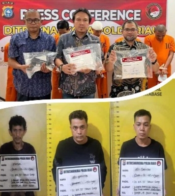 Keenam tersangka tersebut adalah AS (39 tahun), F (37 tahun), H (44 tahun), MC (42 tahun), HA (26 tahun), dan FH (36 tahun), yang merupakan mantan anggota polisi Polda Riau.