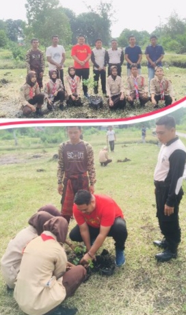 RIAUMADANI. COM, BENGKALIS - Dalam rangka memperingati hari lingkungan hidup Pemerintah Desa Perapat Tungal Kecamatan Bengkalis bersama Dinas Lingkungan Hidup (DLH) Kabupaten Bengkalis melakukan Penanaman pohon di Taman Desa Perapat Tungal dengan melibatkan kelompok pencinta alam Pramuka siswa sekolah MTS Desa Perapat Tungal, Minggu (23/06/2024) pagi