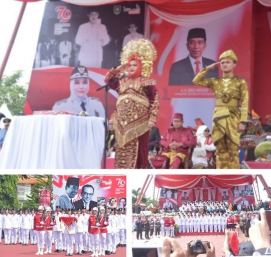 Upacara Detik-detik Proklamasi di Bengkalis berlangsung khidmat, Inspektur Upacara Bupati Kasmarni Kenakan Pakaian Adat Minang