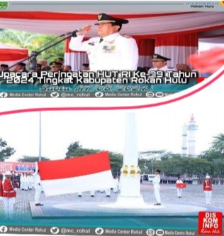 RIAUMADANI. COM, ROHUL - Memperingati Hari Ulang Tahun (HUT) Republik Indonesia (RI) ke-79, Pemerintah Kabupaten Rokan Hulu(Rohul) menggelar Upacara di Halaman Kantor Bupati, Sabtu (17/8/2024) dengan mengangkat Tema " Nusantara Baru Indonesia Maju".