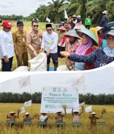 Badan Amil Zakat Nasional (BAZNAS) Kabupaten Siak berkolaborasi bersama BAZNAS Provinsi Riau melakukan panen raya lumbung pangan padi di Desa Kemuning Muda Kecamatan Bungaraya. Selasa, 10/09/2024.