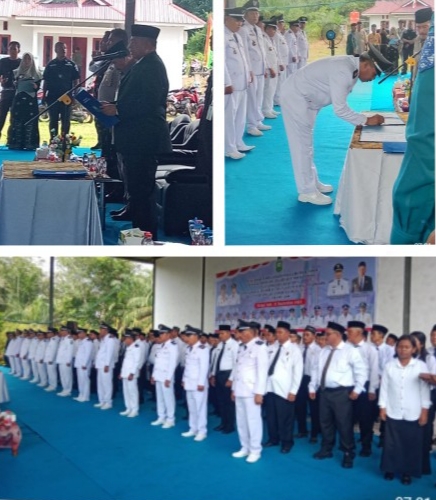 RIAUMADANI. COM, Sungai Apit - Bupati Siak Alfedri resmi mengukuhkan penambahan masa jabatan 13 Penghulu dan Bapekam, di Lingkungan pemerintah kecamatan Sungai Apit kabupaten Siak yang berlangsung di Aula Futsal Kampung Kayu Ara Permai Jum'at, (13/9/2024).