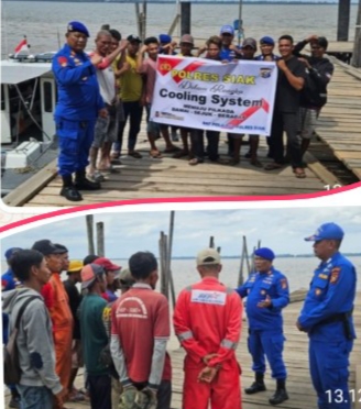 Hadir dalam kegiatan tersebut Kasat Polairud Polres Siak AKP JA.Purba, Personil Satpolairud Polres Siak dan kelompok/himpunan nelayan Kampung mengkapan.