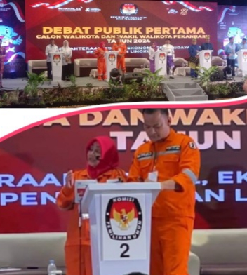 Siap Melayani Masyarakat Pekanbaru Paslon Intan Kenakan Seragam ala Pekerja di Debat Publik Pilkada