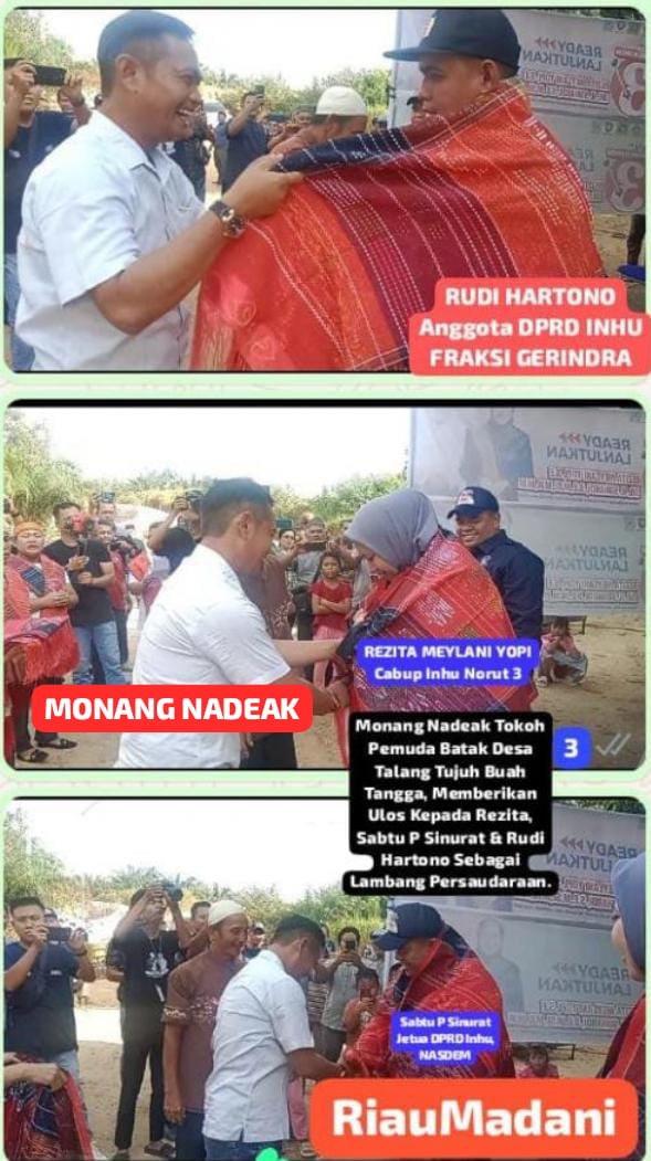 Selain itu Sabtu P Sinurat Ketua DPRD Inhu, ia suku Batak tadi ia di Ulosi, artinya ia merasa berada di kampung halaman.