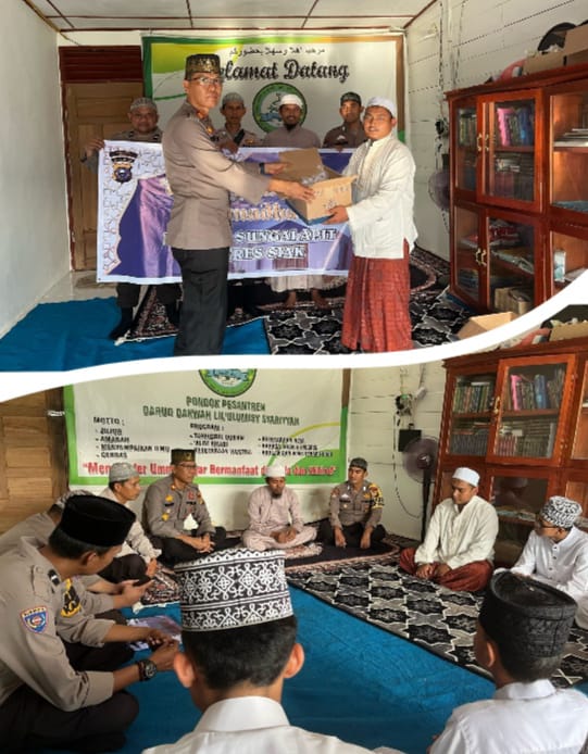 RIAUMADANI. COM, SUNGAI APIT - Semarak Ramadhan 1446H Kapolsek Sungai Apit, AKP. Rinaldy Parlindungan SH, beserta Personil melaksanakan kegiatan berbagi 100 Takjil kepada para Santri di Pondok Darud Dakwah Li'ulumsy Syariah Sungai Apit Kabupaten Siak Senin sore (10 /03/2025) .