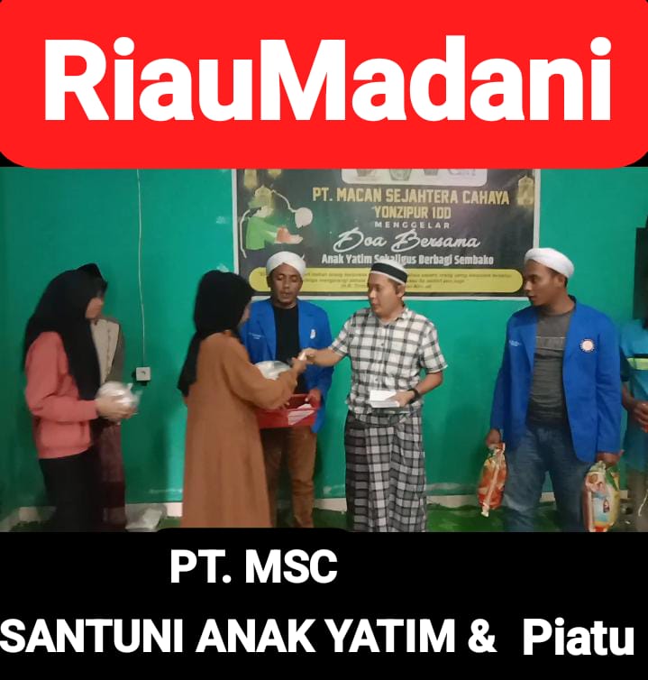 RedangSeko, Inhu, RIAUMADANI.Com- Di usia nya yang ke 10 tahun, PT. Macan Sejahtera Cahaya (MSC) semakin menggembirakan, dan untuk yang ketiga kalinya melaksanakan giat amal menyantuni anak anak yatim yang berada di sekitar perusahaan. Ada sekitar 40 anak yatim dan piatu dari desa Redang Seko, Kecamatan Lirik, Kabupaten Indragiri Hulu (Inhu) sebagai penerima santunan, Rabu (12/03/2025).