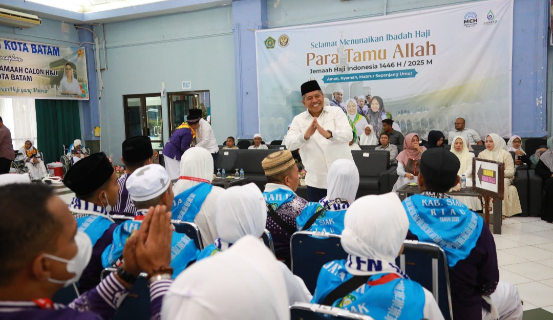 BATAM, RIAU MADANI. COM - Suasana penuh haru, menyelimuti pelepasan keberangkatan Calon Jemaah Haji (CJH) asal Kabupaten Siak Menuju Mekah, berlangsung di aula Embarkasi Batam, Senin (12/5/2025).