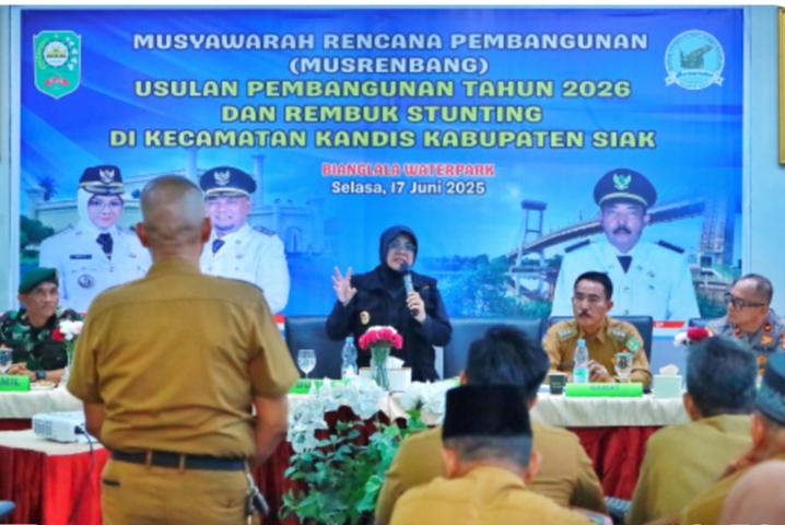 Bupati Siak Afni membuka secara langsung kegiatan Musyawarah Perencanaan Pembangunan (Musrenbang), usulan Pembangunan tahun 2026 dan Rembuk Stunting tingkat Kecamatan Kandis tahun tahun 2025, di Bianglala Waterpark, Kelurahan Telaga Sam-Sam, Kecamatan Kandis, Selasa (17/6/2025).