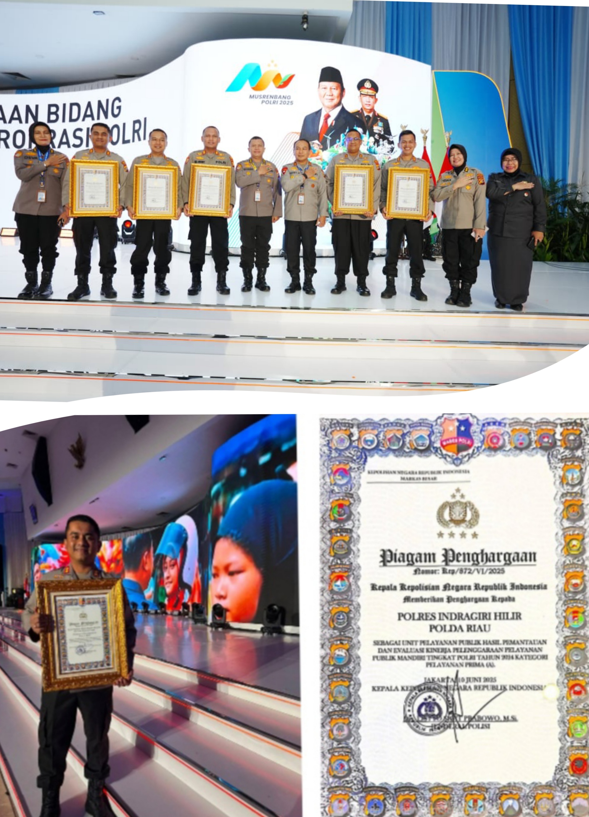 Piagam dengan Nomor Kep/872/VI/2025 tersebut diserahkan dalam sebuah upacara resmi di Mabes Polri, Jakarta, pada 10 Juni 2025, sebagai bentuk apresiasi atas pencapaian luar biasa Polres Inhil dalam memberikan layanan publik yang berkualitas dan profesional.