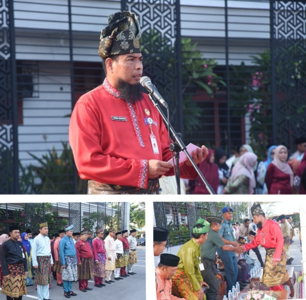 BENGKALIS. RIAU MADANI. COM –Dalam rangka memperingati Hari Jadi ke-68 Provinsi Riau, Bupati Bengkalis, Kasmarni diwakili Asisten I Bidang Pemerintahan dan Kesejahteraan Rakyat, Andris Wasono, melaksanakan apel gabungan, Sabtu pagi 9 Agustus 2025, di halaman Kantor Bupati Bengkalis.