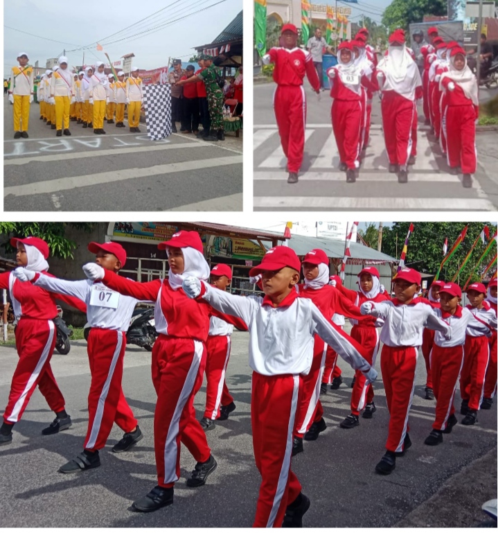 Sungai Apit - Camat Sungai Apit Tengku MukhTasar. S. Sos., M. Si, melepaskan sebanyak 32 Peserta lomba gerak jalan yang di ikuti tingkat SD, SMP dan tingkat SLTA Sabtu, (16/8/2025).