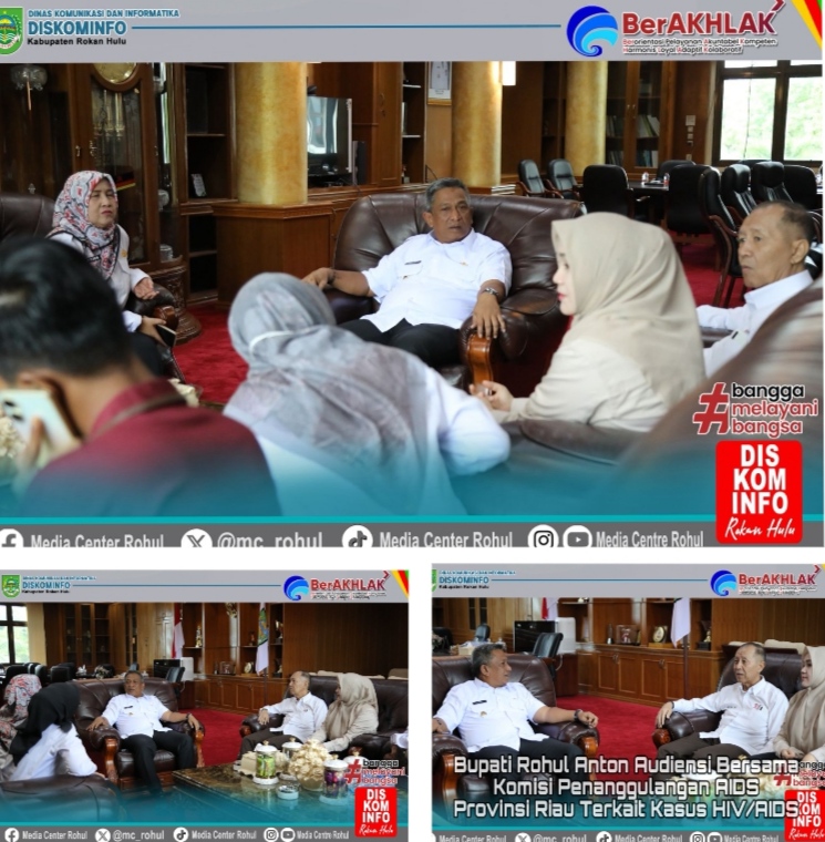 Audiensi ini dihadiri oleh Sekretaris Komisi Penanggulangan AIDS Provinsi Riau dr. Wildan Ashfan, M.Kes, Kadinkes Rohul, Drg. Septien Asmarwiati M.Kes, dan pihak terkait lainnya.