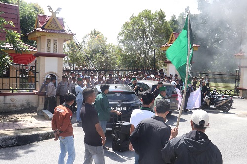 Sementara itu, Ketua DPRD Pelalawan, Syafrizal SE menerima langsung massa aksi dan menyatakan pihaknya menghargai aspirasi mahasiswa.