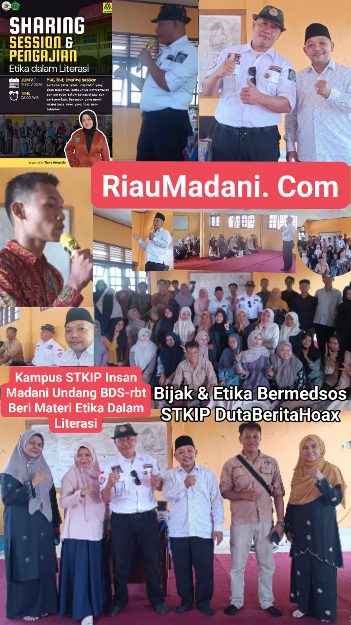 Kampus STKIP Insan Madani Undang Narsum, BDS-rbt Beri Materi Etika Dalam LiterasiAir molek, Inhu, RIAU MADANI. Com- Badan Eksekutif Mahasiswa (BEM) Sekolah Tinggi Keguruan dan Ilmu Pendidikan (STKIP) Insan Madani Airmolek menggelar kegiatan Penguatan Pengamalan Emosional dan Spiritual. Jumat, (21 Nov 2025), deengan mengangkat Tema "Sharing, Session dan Pengajian Etika dalam Literasi mengajak mahasiswa /wi untuk menjunjung tinggi atittude (etika) sebagai protek dalam menjalankan kehidupan bermasyarakat.