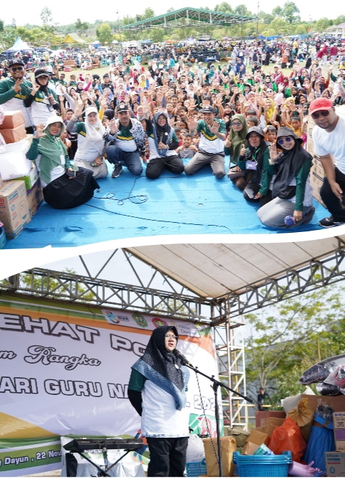 DAYUN RIAU MADANI. COM - Bupati Siak Afni Z melepas peserta jalan santai dalam rangka peringatan Hari Ulang Tahun (HUT) ke-80 Persatuan Guru Republik Indonesia (PGRI) dan Hari Guru Nasional yang digelar di Embung Terpadu Kampung Dayun, Kecamatan Dayun, Sabtu (22/11/2025).