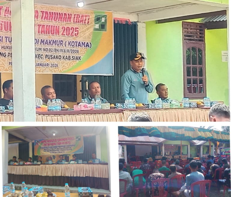 Rapat Anggota Tahunan (RAT) berlangsung di halaman Kantor Koperasi Tuah Abadi Makmur (KOTAMA) Kampung Pebadaran, kecamatan Pusako kabupaten Siak, "tutup buku tahun 2025