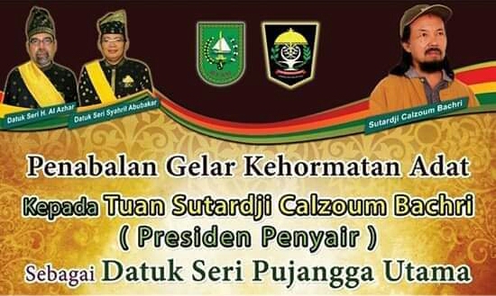 Gelar kehormatan adat Datuk Seri Pujangga Utama akan ditabalkan kepada presiden penyair Sutardji Calzoum Bachri (SCB) oleh Lembaga Adat Melayu Riau (LAMR), hari Rabu ini (7/11/18)