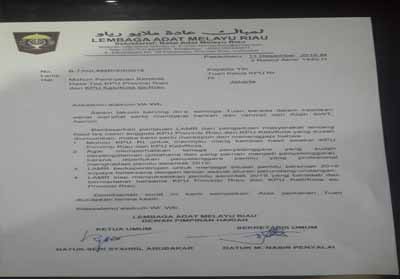 Dimana melalui surat pernyataan dengan Nomor Surat: B-735/LAMR/XII/2018 kepada KPU RI tentang Permohonan Peninjauan Kembali Hasil Tes Seleksi Anggota KPU Provinsi Riau dan Kabupaten dan Kota yang ditandatangani oleh Ketua DPH LAMR, Datuk Seri Syahril Abu Bakar menyatakan: