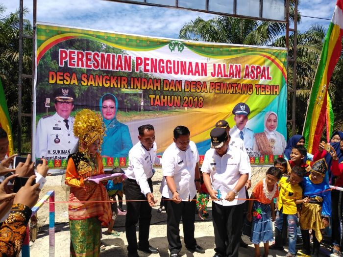 PASIR PENGARAIAN. RIAUMADANI. com - Bupati Rokan Hulu (Rohul) H Sukiman meresmikan penggunaan jalan aspal sepanjang 3,2 Kilometer di Desa Sangkir Indah, Kecamatan Pagaran Tapah Darussalam. Dengan adanya jalan yang didanai APBD Murni Kabupaten tahun 2018 itu diharap bisa mendorong pertumbuhan perekonomian masyarakat.