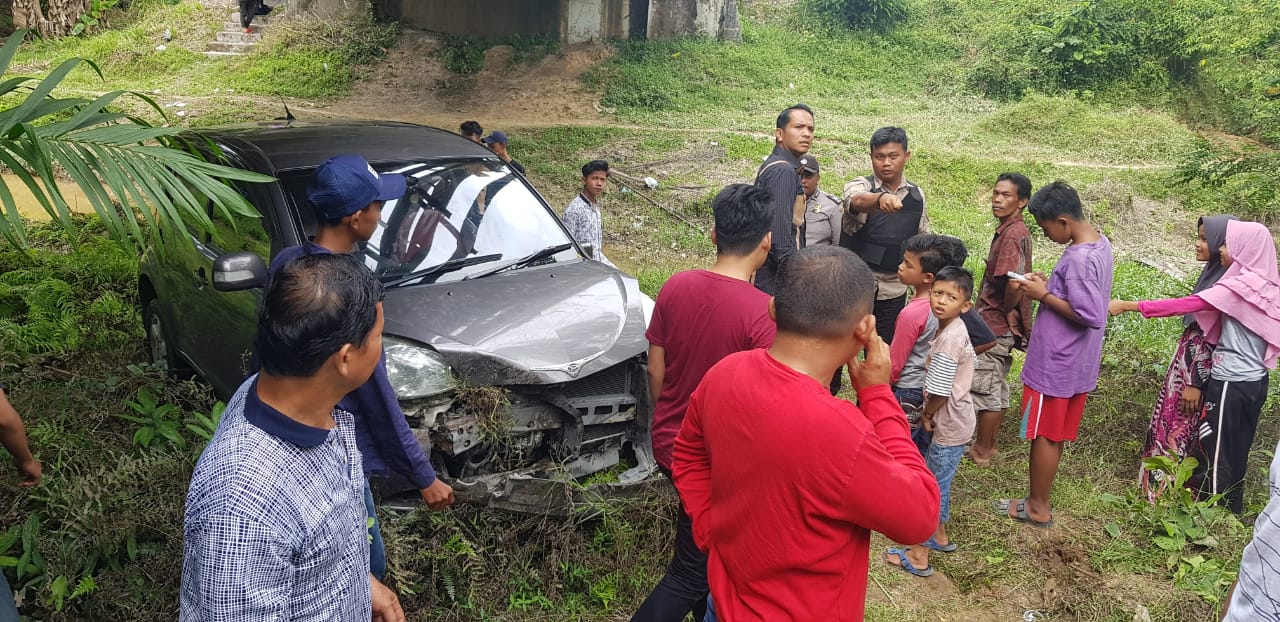 TAMBANG. RIAUMADANI. com - Telah terjadi Kecelakaan Lalulintas tunggal di Km 30 Jalan Lintas Pekanbaru - Bangkinang pada Minggu siang (20/1/2019), sebuah mobil penumpang pribadi jenis Daihatsu Sirion BM-1178-QI yang dikemudikan Yunus Kamin (74) warga Tangkerang Pekanbaru terjun ke bawah jembatan.