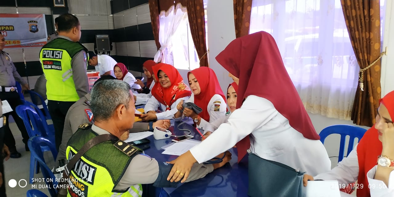 Selasa pagi (29/1/2019) sekira pukul 09.00 wib, bertempat di Gedung Serbaguna Polres Kampar digelar Acara "Bhakti Sosial Polres Kampar Peduli Donor Darah" dalam rangka Hari Jadi Kabupaten Kampar ke-69 tahun 2019.