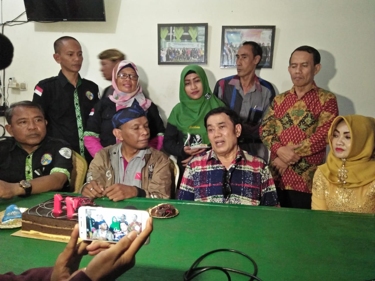 Kota Bekasi, Jabar, RIAUMADANI.com - Peringatan Hari Pers Nasional (HPN)ke 71 yang jatuh hari ini Sabtu, 9 Februari 2019, Ikatan Wartawan Online (IWO) Kota Bekasi mendapatkan kejutan kue tar sebagai bentuk ucapan suka cita atas peringatan HPN dari salah satu musisi dangdut Deddy Irama.