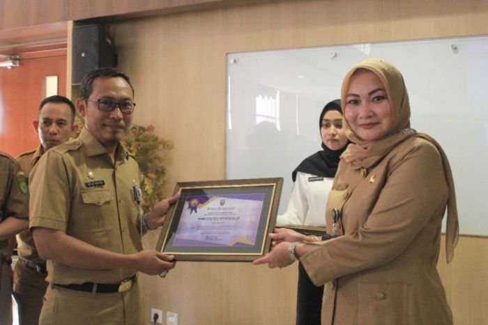 Kadis DPMPSP Bengkalis Basuki Rakhmat menerima penghargaan terbaik