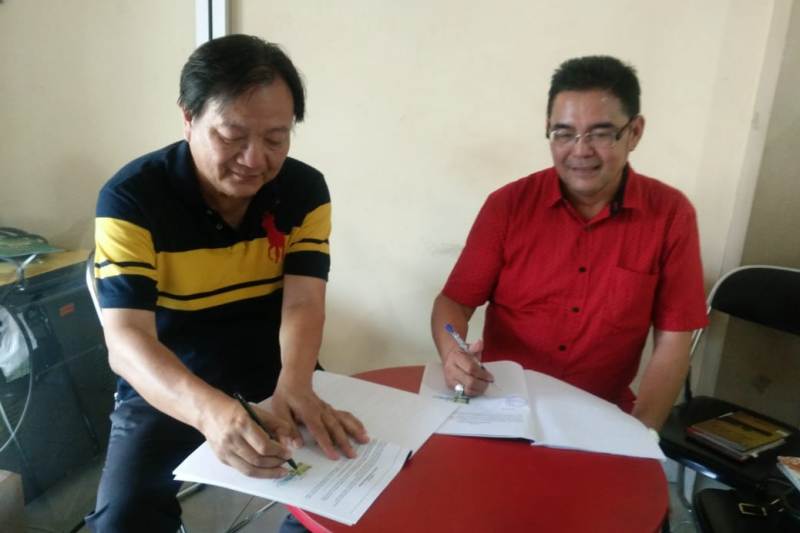 “In shaa Allah, ke depan kerjasama ini akan berterusan dan dilanjutkan,” ujar Suwarto yang saat penandatangani MoUmengenakan kemeja lengan pendek warna merah.
