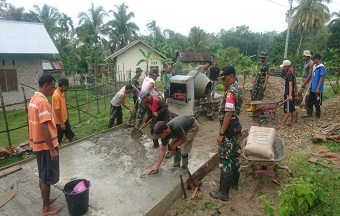 Kegiatan TMMD TNI bersama warga pengerjaan Pembangunan semen I sasi jalan
