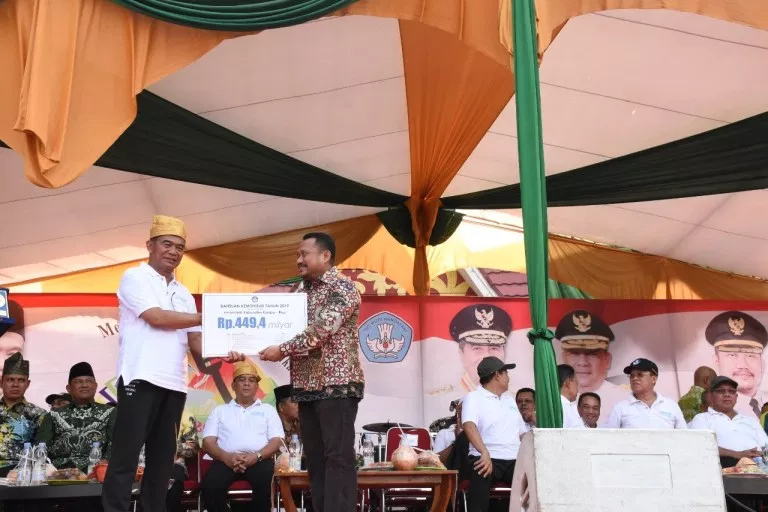 pada kesempatan tersebut Menteri Pendidikan dan Kebudayaan RI menyerahkan Bantuan untuk tahun 2019 sebesar Rp. 449,4 Milyard untuk program Indonesia Pintar, BOS, DAK Fisik, tunjangan guru,, tunjangan profesi guru, tambahan penghasilan guru, bantuan operasional PAUD dan batuan operasional kesetaraan.