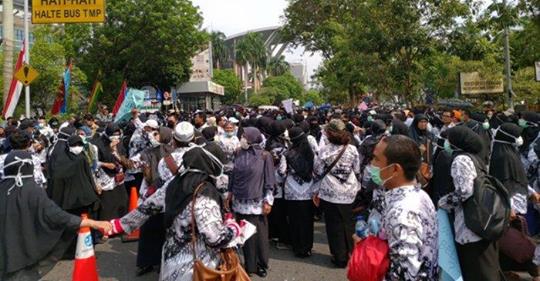 Ribuan Guru Kembali Berunjukrasa ke Kantor Wali Kota dan DPRD Pekanbaru