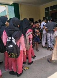 Teman teman korban berkumpul di Puskesmas desa Alai